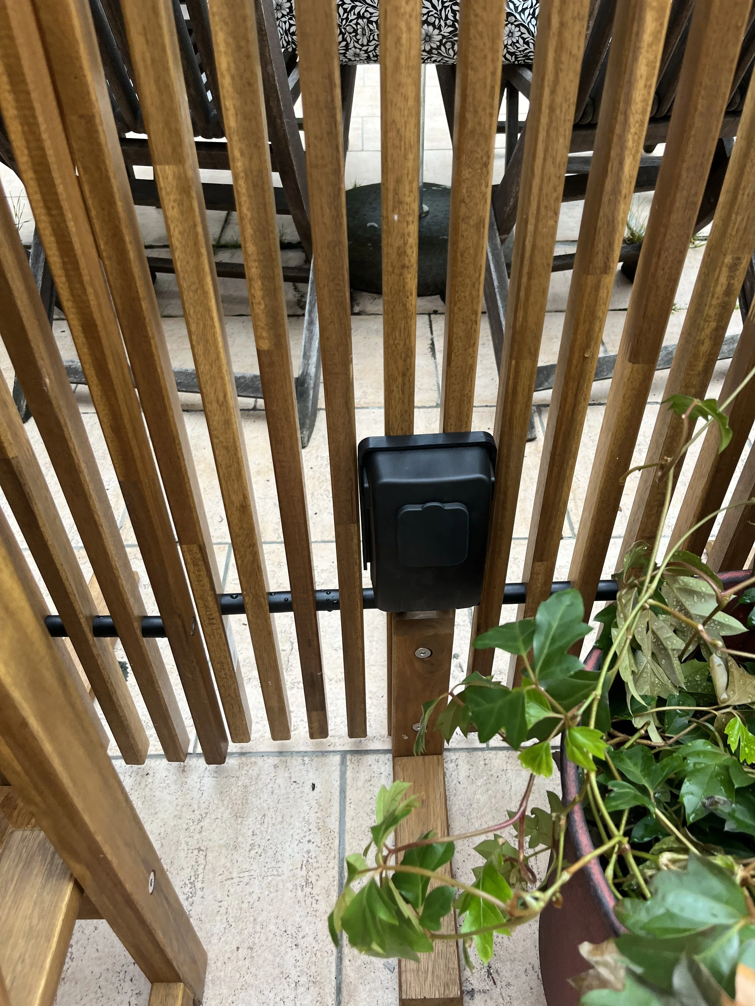 Entré till terrasen där nyckelboxen är