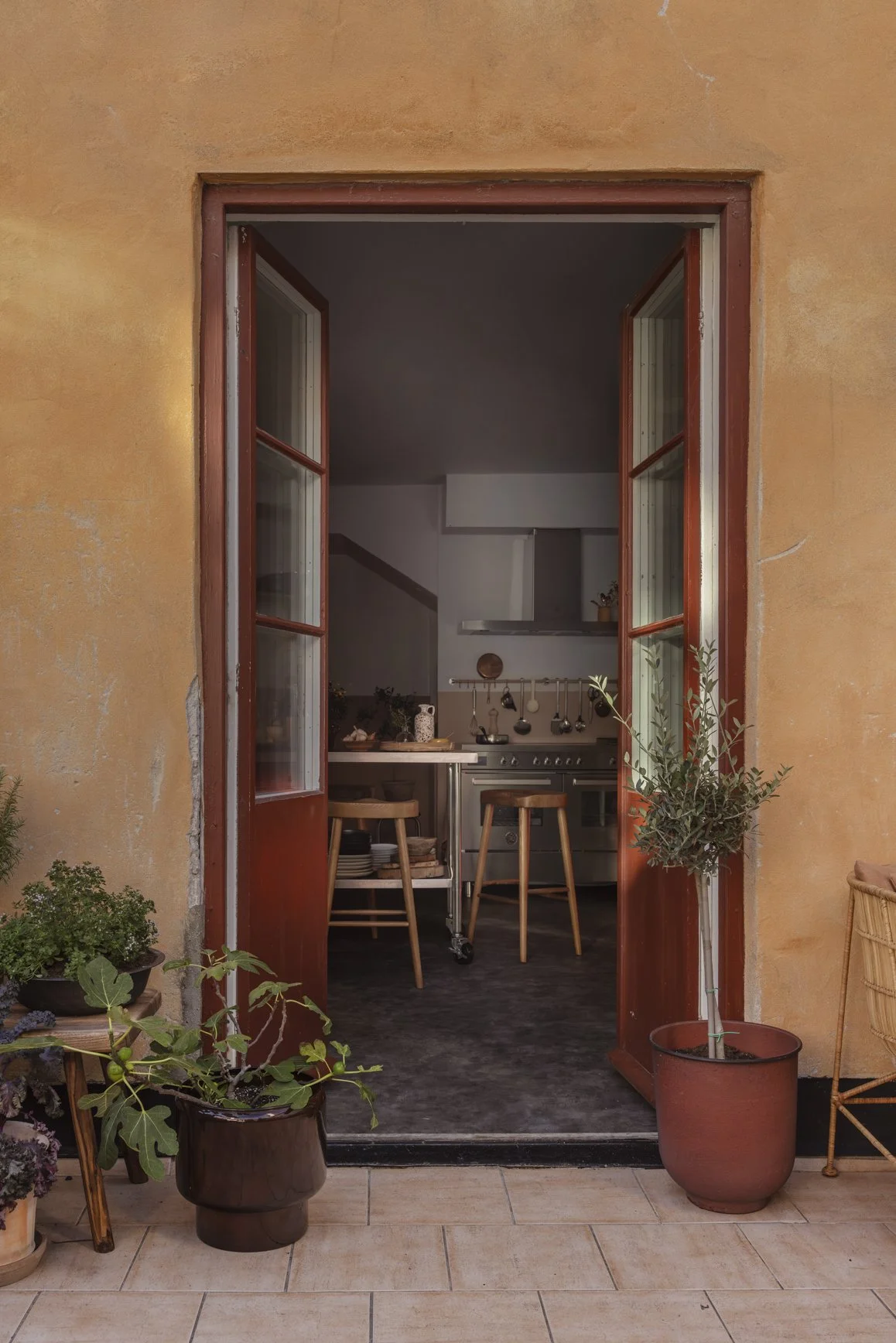 Terass i direkt anslutning till det öppna mingelvänliga köket.